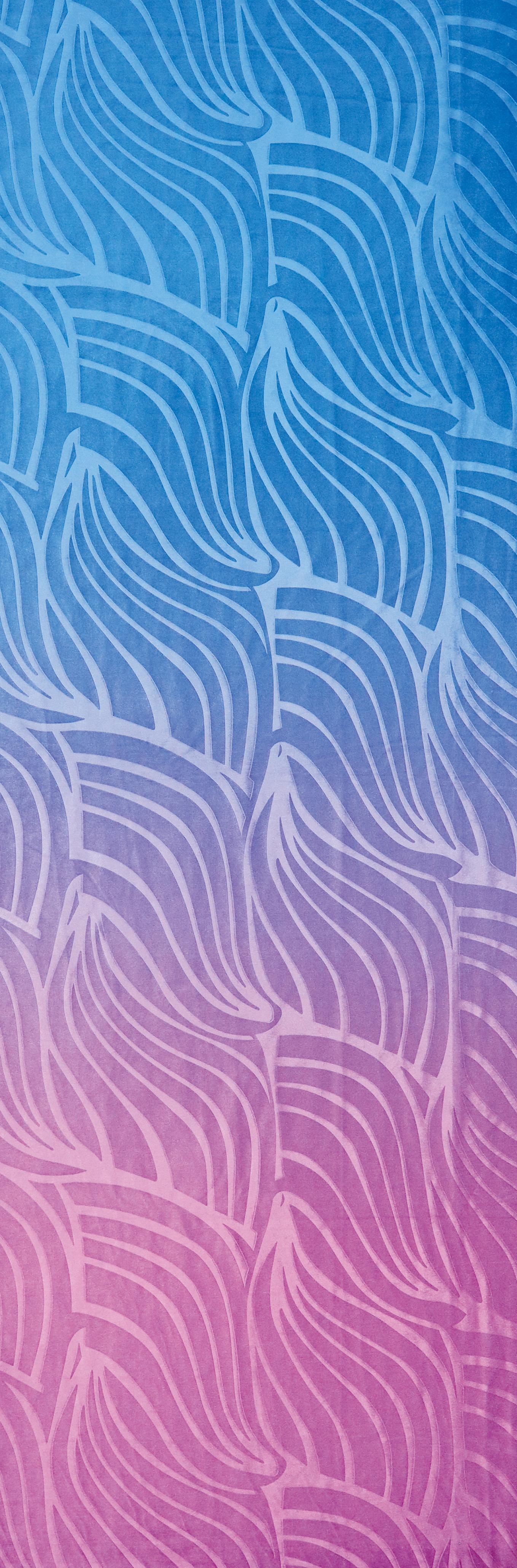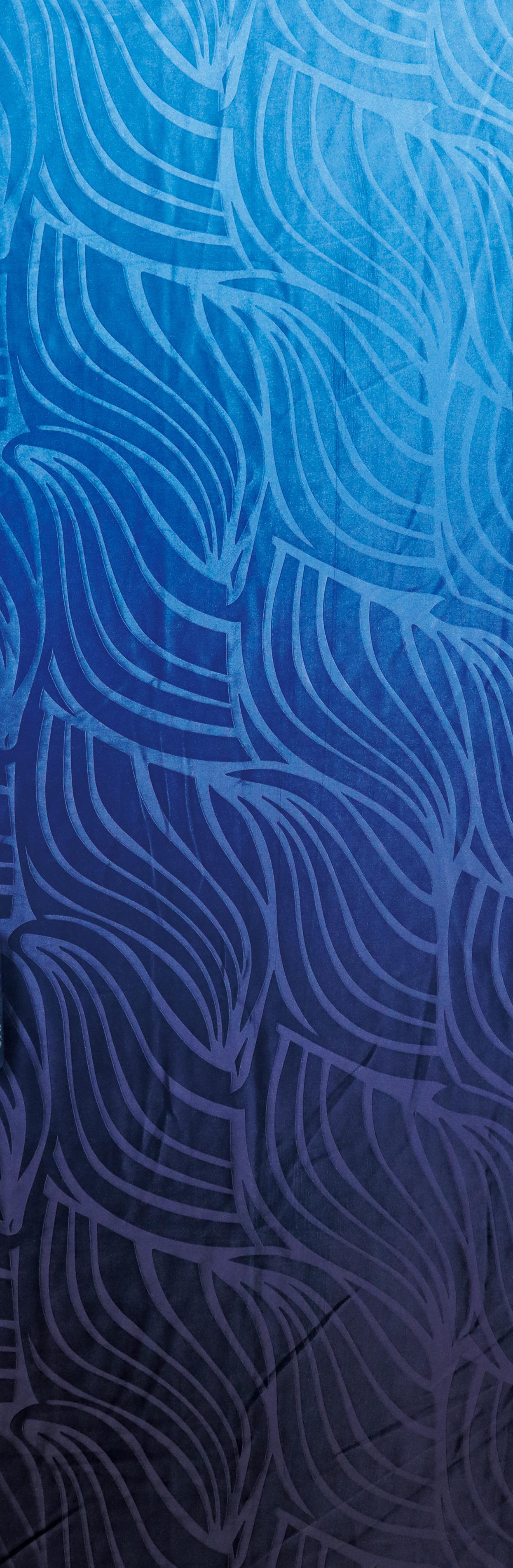 波や海の流れを思わせる、ブルーから紺碧へのグラデーション。海の深く静かな奥行きまでも感じさせる色合い