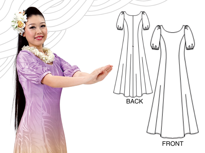 すっきりとしたラウンドネックに、控えめな膨らみのハーフスリーブを組み合わせたデザイン。女性らしい華やかさと愛らしさを兼ね備えたスタイルです。