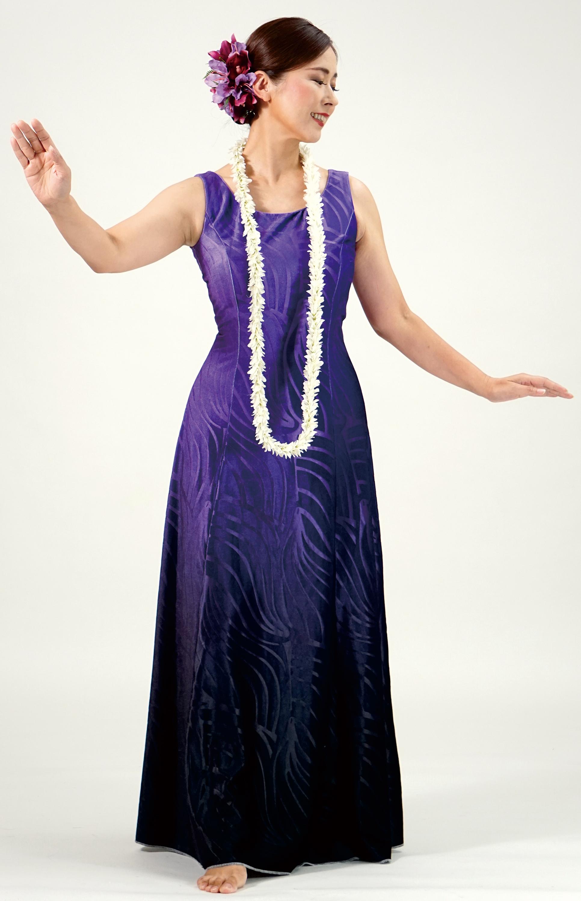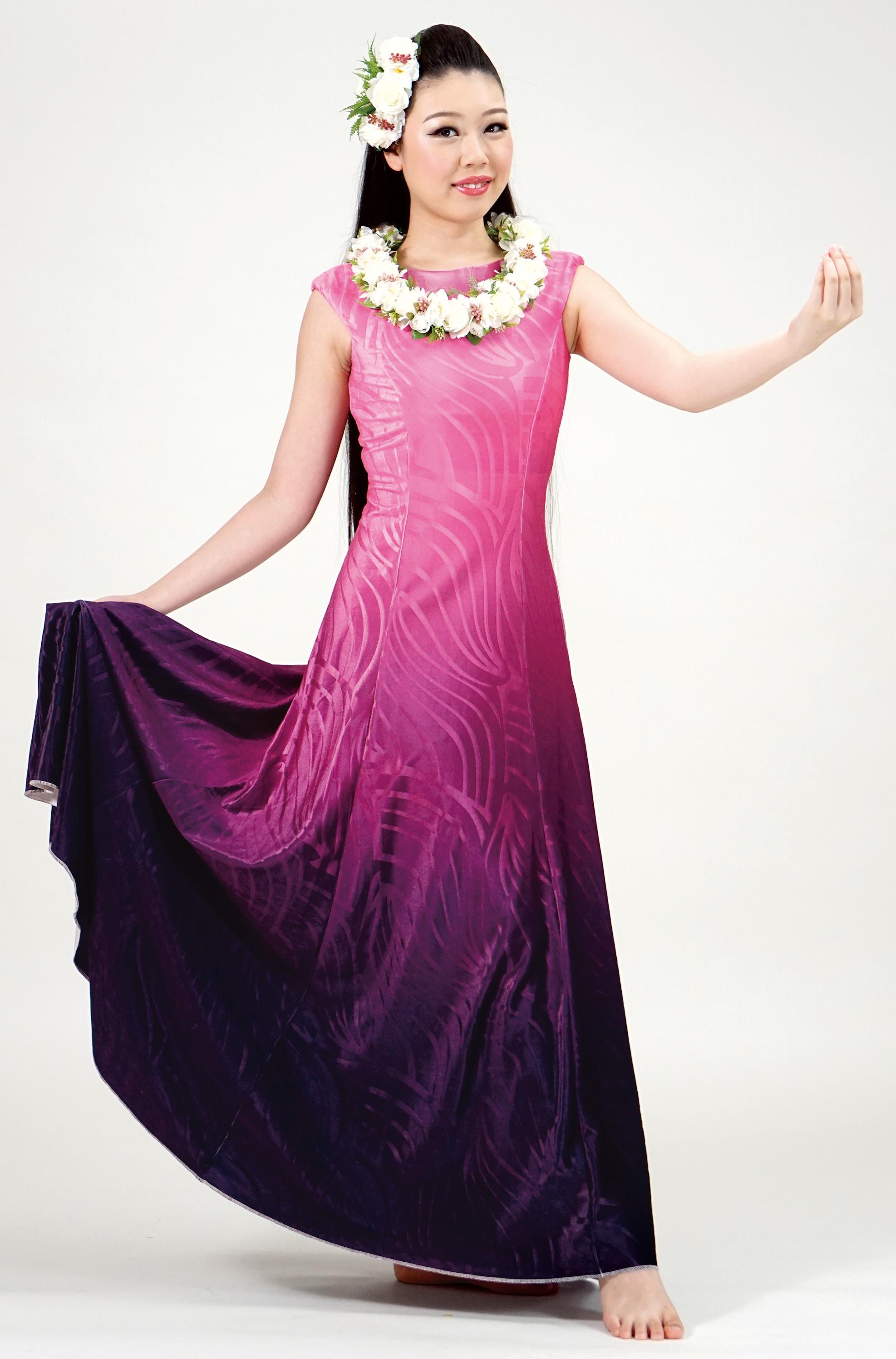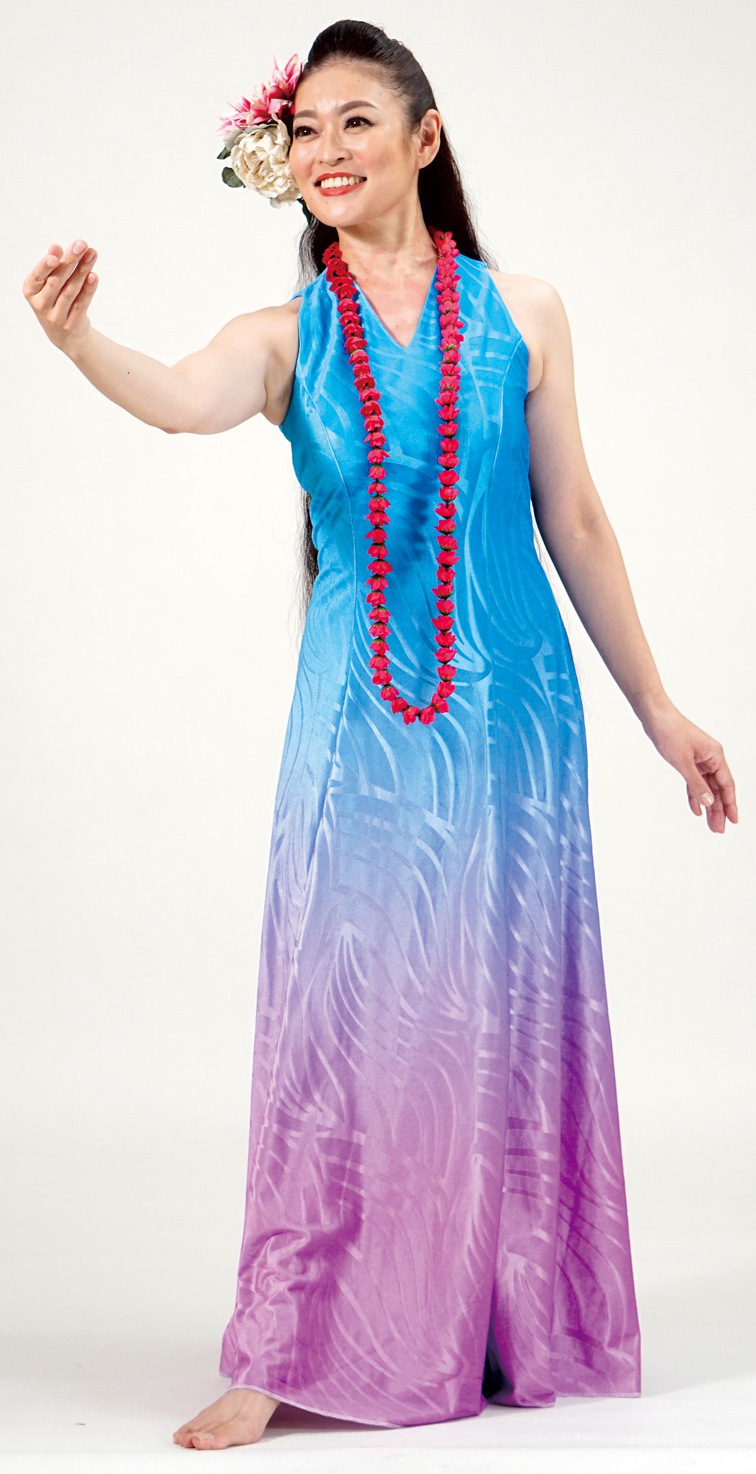 ラニフリのキャンペーンドレスは、ベロアに型押しを施し、さらにグラデーションで染め上げた新発想の一着。 光の加減で模様が浮かび上がり、舞いの動きとともに新しい表情を生み出します。